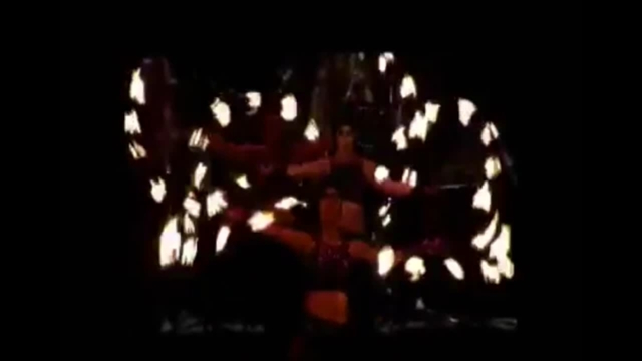 Talented fire artists perform dramatic juggling stunts with flaming props