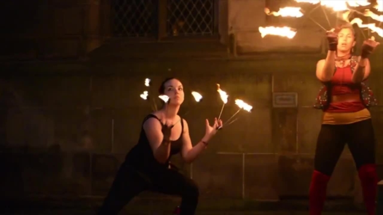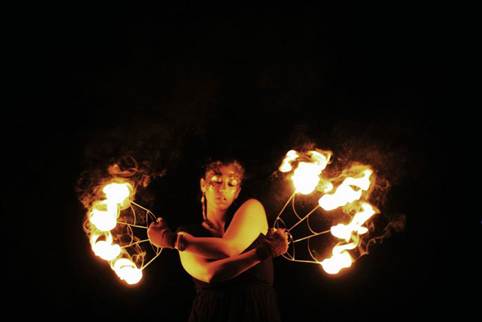 The Fire Show Jordan Spirals is a choreographed fire entertainment experience perfect for mesmerising viewers and a create a great atmosphere at many events. The female fire duo take inspiration from Sufi philosophy and the symbolism of the spiral as they use entrancing movements with multiple fire props. They also bring in influences from martial arts, contact dance and the magic of traditional circus.
