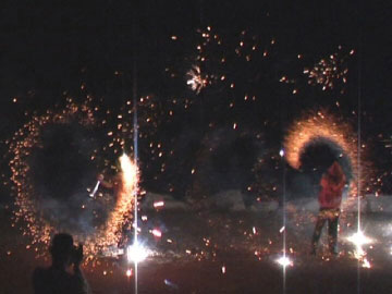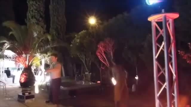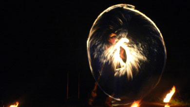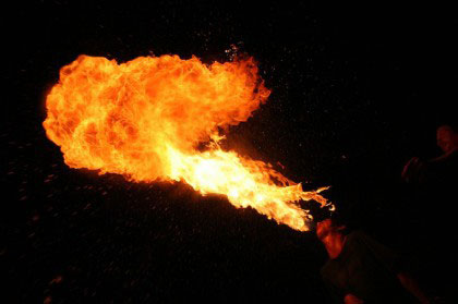 Amazing feats of fire juggling, acrobatics & fire breathing