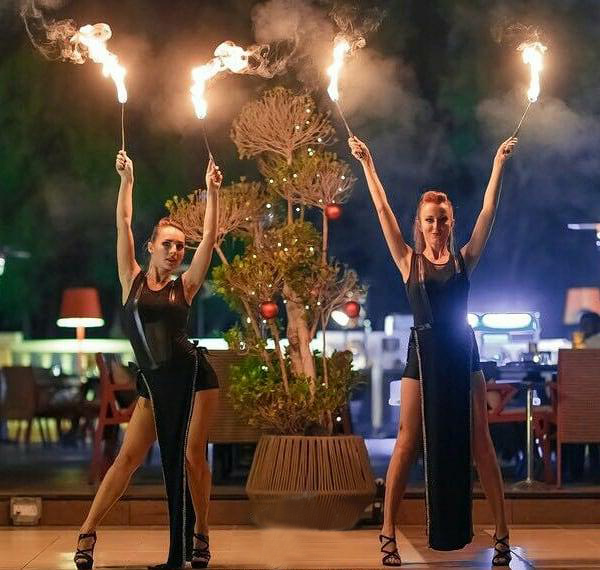Dancing with fires a popular corporate entertainment option also perfect for weddings, private parties, nightclubs, festivals, and more! Especially suitable for evening events, fire dance shows cause greater visual impact if performed under dim light conditions or in the dark.