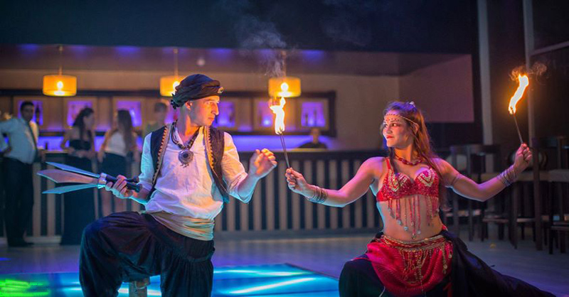 Able to carry out their fire dance shows both indoors and outdoors, this fire dance duo can adapt to different performance spaces. A versatile couple, these talented artists are specialists in fire manipulation and can perform anything from fire breathing acts to fire dance shows with pyrotechnics and other effects.