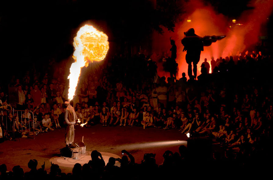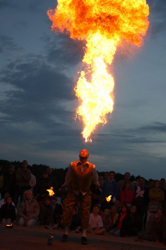 The firebreather doesn't just play with fire, he is one with the flames from his mouth. As a real performer, he charms the crowds, pleasing old and young, even before the finale has started...