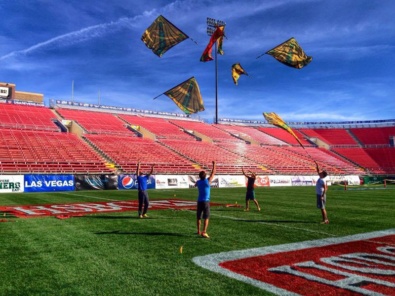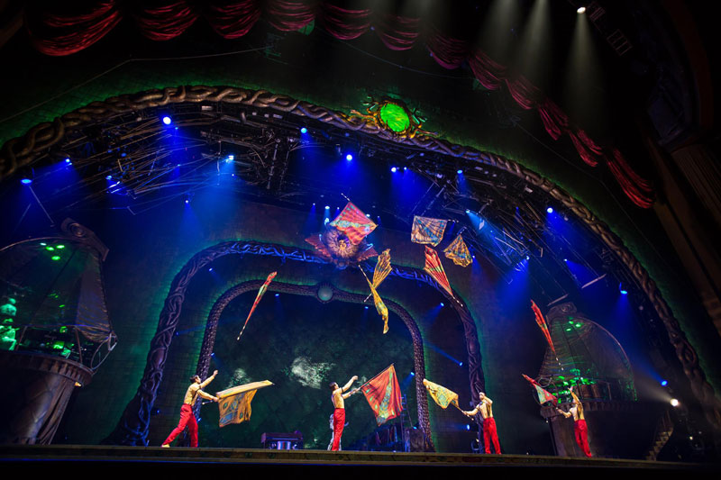 A popular unique circus entertainment option for a variety of occasions, this flying flags show is perfect for sporting events, after dinner experiences, opening acts, award ceremonies, concerts, etc. These flag jugglers always welcome the opportunity to share the stage with other artists such as singers, live bands or other circus performers and can also become part of a parade or a bigger theatre production.