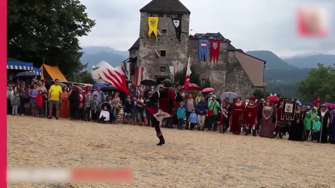 Our esteemed flag waving team consists of 12 people; 6 flag wavers, 3 medieval drummers and 3 medieval trumpeters