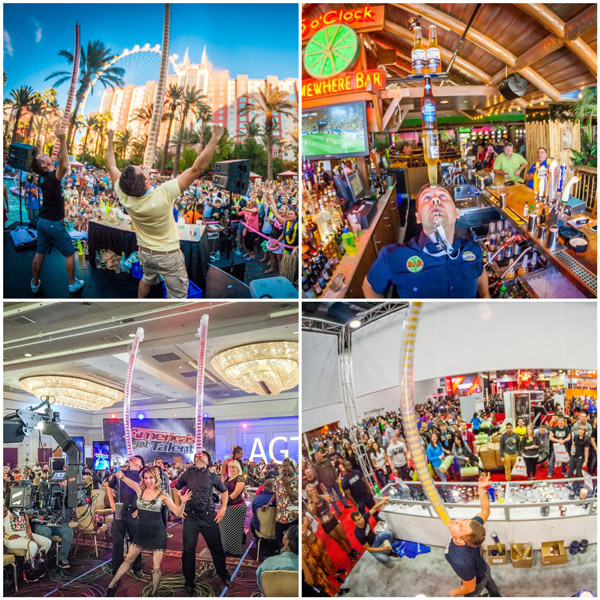 Currently working a busy travel agenda, showcasing his expertise and sharing his work philosophy all around the world, this act also gives master classes and performs for personal events, among other flair-related activities. With over 50 competitions and over 30 world championships under his belt, you can be pretty sure that Flair Bartender Vegas is achieving a legendary status in the flair bartending circuit and one of the most entertaining acts you could book at your event.