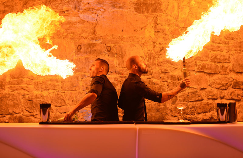 Trained in fire-breathing, our Flair Bartenders Geneva can pull out this impressive circus skill to add event more theatre and finesse to their performance.