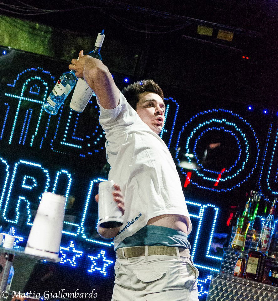 The concept of Flair Mixology / Bartending, also known as Olympic Bar tending, developed in the USA to offer customers an additional attraction in bars and clubs to ensure they were not only offered delicious drinks, but also a great show. The term defines an artistic way to present work at the bar, making it both entertaining and enjoyable for customers. Therefore bottles and other bar equipment is juggled, twirled, thrown and whizzed around as drinks are prepared in an artistic fashion.