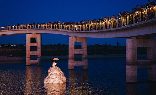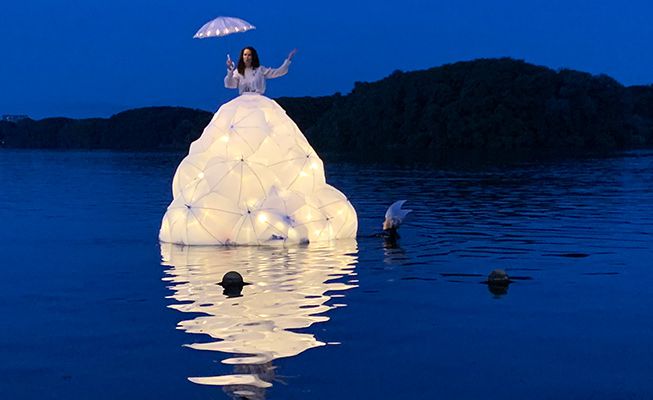 The Floating Dress Soprano amazed audiences at events and festivals in the Netherlands, Germany, Belgium and France. Whether you are planning a public event or luxury VIP party, the soprano singer and her totally incredible dress is a one of a kind entertainment option. You can hire the floating singer to perform on any stretch of calm water such as a lake or canal.