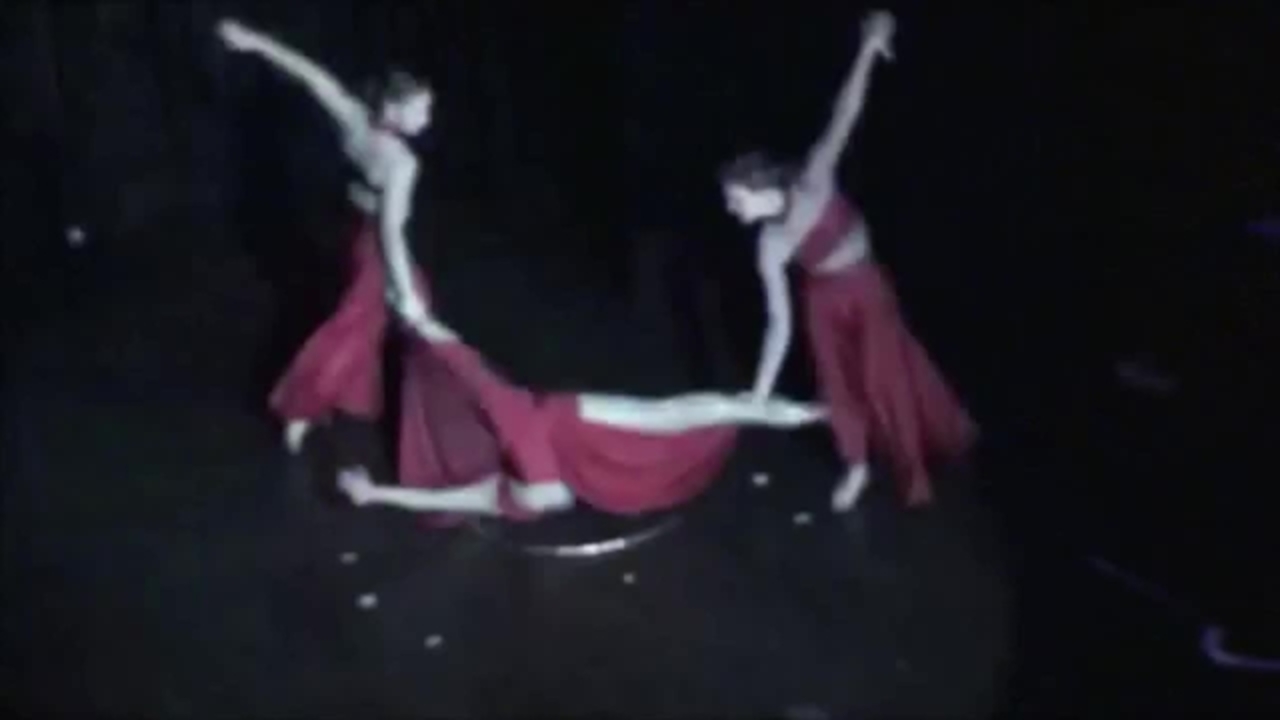 A slow-motion demonstration of complex acrobatic moves that combine dance, gymnastics and artistic highlights.