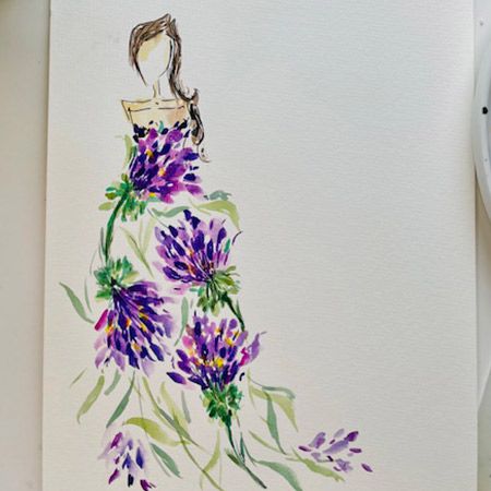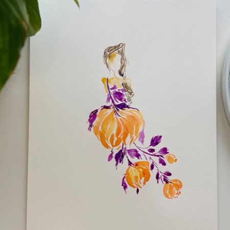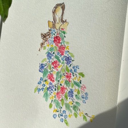Our artist creates beautiful hand-painted watercolours of your guests in imaginative floral-inspired outfits that they can keep as a unique memento