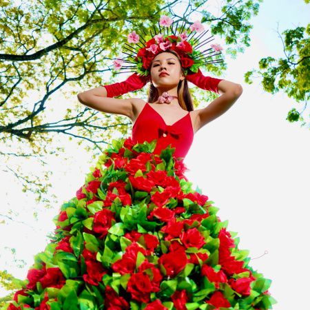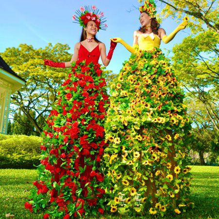 Capture the crowd's attention with our stilt walkers dressed in stunning flower dresses, bringing the essence of spring to your celebration