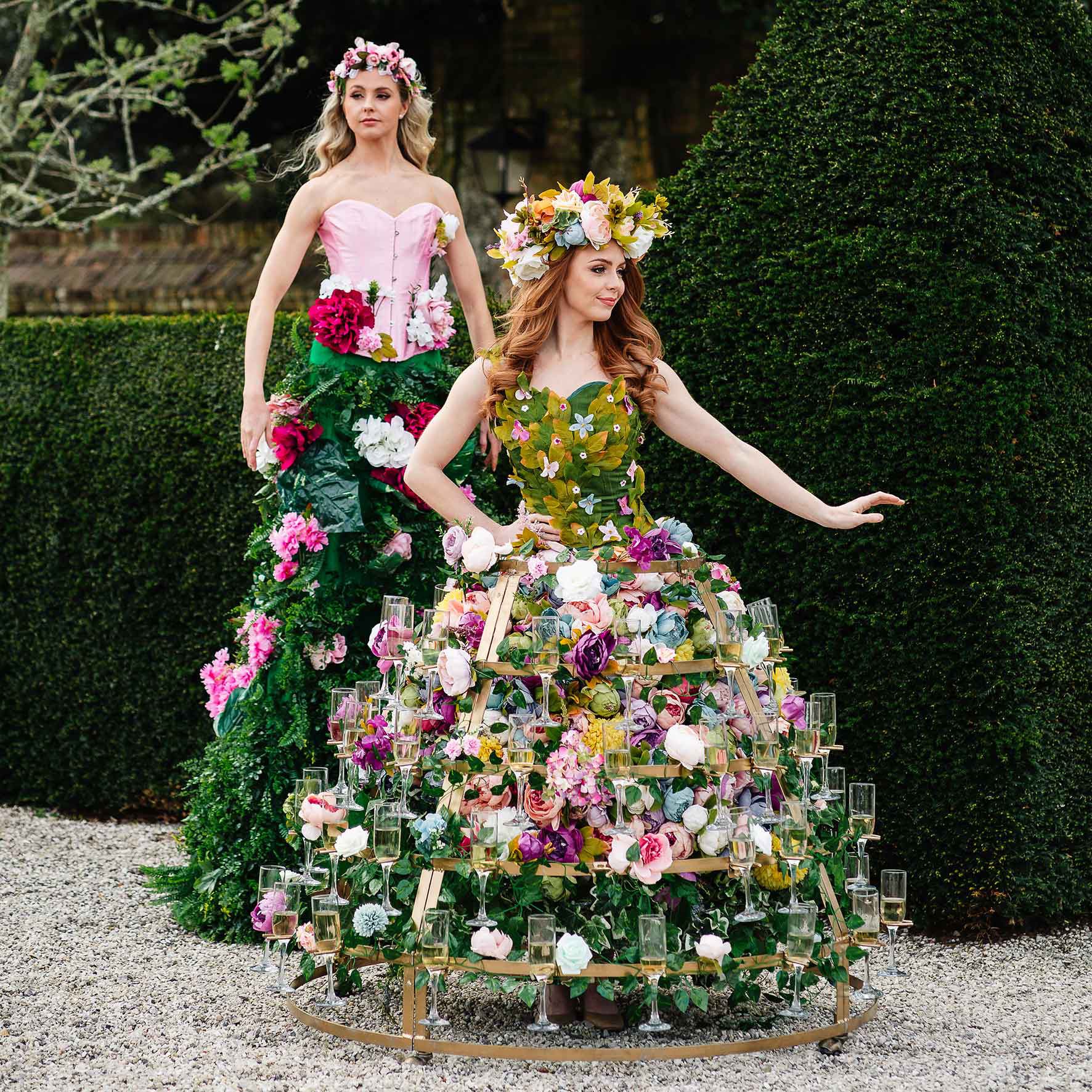 The tailorable line-up can include a floral violinist, champagne wall, champagne dress, floral hostesses, garden ballerinas and a lollipop aerialist