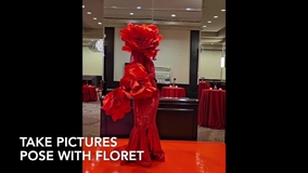 Up to three floral walkabout costumes are available, elegantly designed in red, pink, and cream-white for an aesthetically stunning ensemble