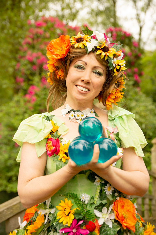 A highly accomplished live violinist, our female musician provides a beautiful musical string backdrop that will float on the breeze around your event. Followed by our talented contact juggler, this fantasy-inspired mix and mingle duo conjures images from A Midsummer Night’s Dream, fairies, wood nymphs and woodland circus performers.