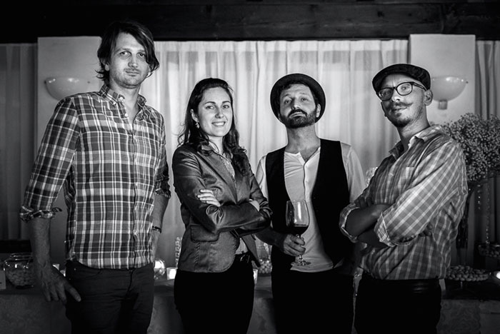 Our cover band is made up up four extremely versatile folk musicians who all play different instruments. Their instrumentation is based around acoustic guitar, bass, a kick drum, an accordion and a violin. They have a a retro, vintage look, a very friendly and fun stage presence and are always a huge success at many live music events in and around Italy.