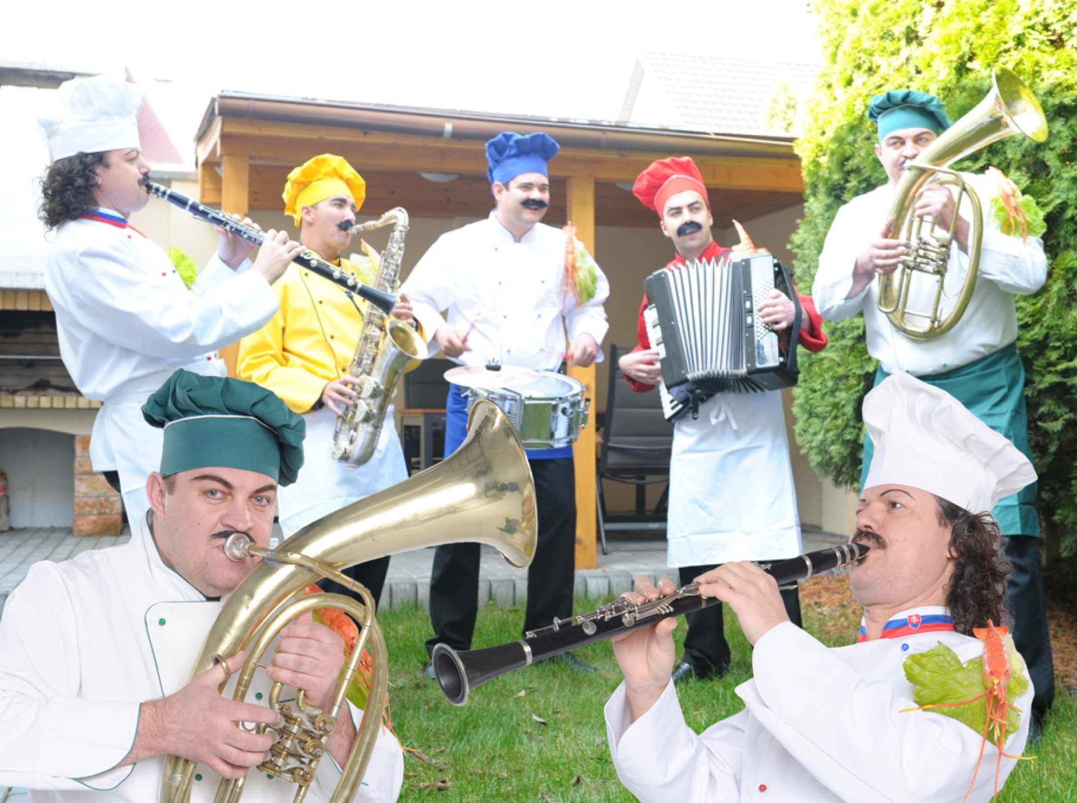 The original and still one of the best entertainment shows available; "The Chefs Orchestra" involves five musical chefs presenting a dynamic and sophisticated live performance. Chefs Orchestra is a funky, energetic brass band featuring professional musicians playing popular tunes as well as original compositions, combining all the instruments together in a fabulous mixing pot of fun, spontaneity and funkiness!