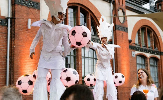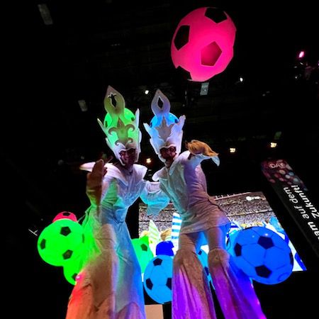 Based in Lower Saxony, these sports-themed stilt performers are available for private and corporate events across Germany and Europe