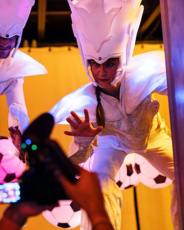 For nighttime events, they also perform as LED stilt walkers, featuring programmable light animations or customised colours to match your theme