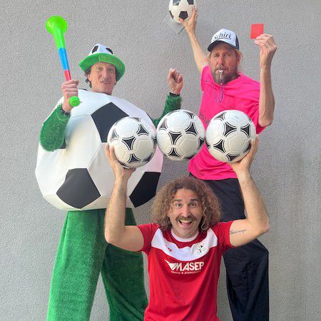 Available as a roaming stilt act dressed as a giant football and referee, they can also incorporate impressive football juggling into the act