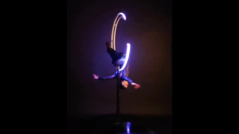 The Freestanding LED Aerial Moon has inbuilt lights to make it dazzling and superb for nighttime events. The amazing aerialist delivers and beautiful freestanding aerial show that is full of grace and majesty. The aerialist balances, contorts and drapes on the moon shaped prop as it gently spins on its podium.