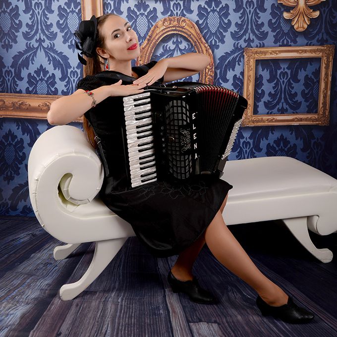 Our renowned female accordionist can provide stage acts and roaming musical performances while interacting with guests
