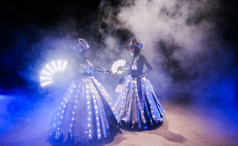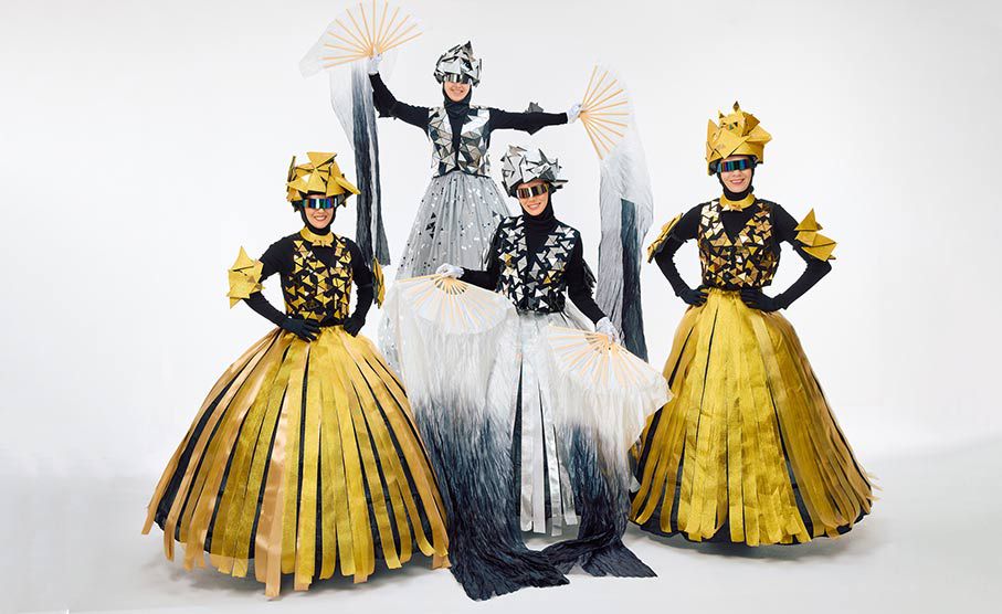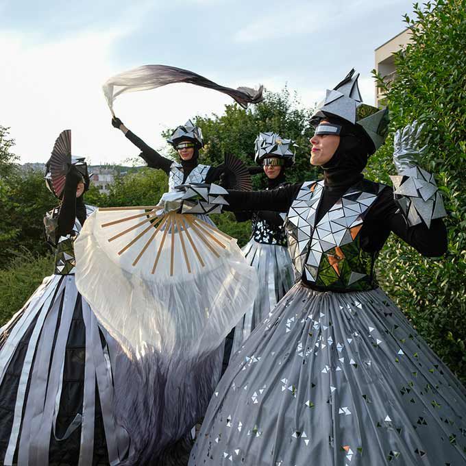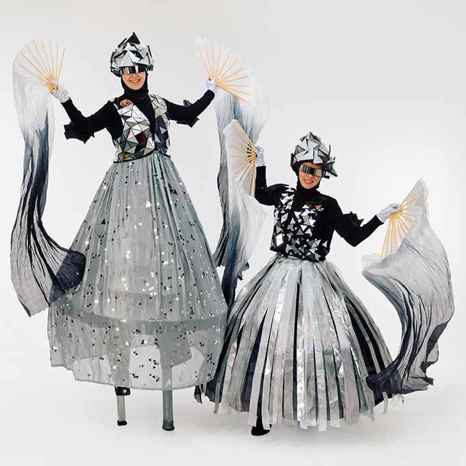 Our dancers dazzle in beautiful black and silver robes that captivate guests and the act can be customised by having the artists perform on stilts