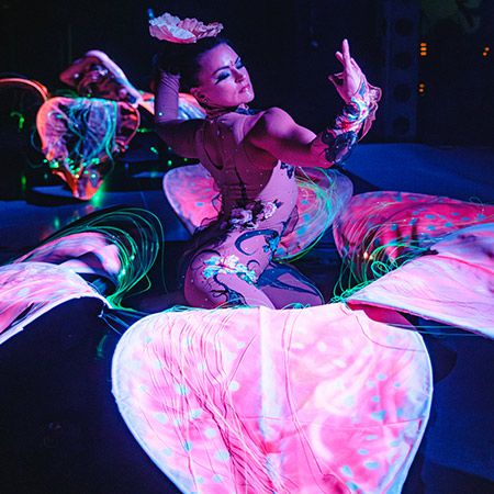 Performers include hula hoopers, aerialists, fire and LED artists, belly dancers and others, all dressed in gorgeous theatrical costumes
