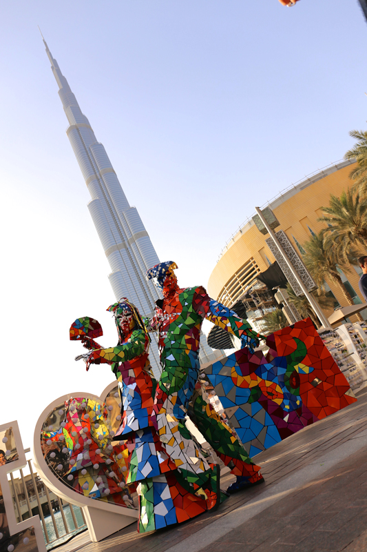 Inspired in the famous Spanish architect and artist Antoni Gaudi’s masterpieces, these unique roaming performers wear traditional matador and flamenco mosaic outfits. A piece of art themselves, the costumes our roaming characters wear are partly created with small mirrors that produce beautiful light effects.