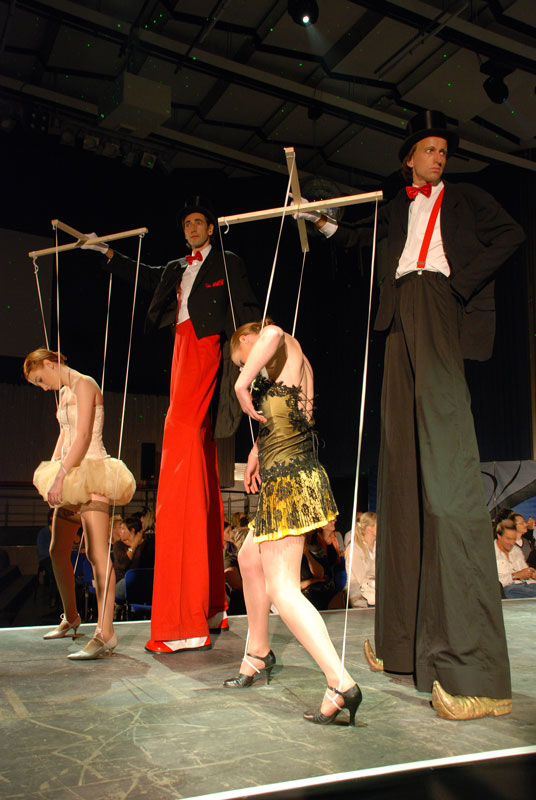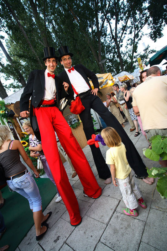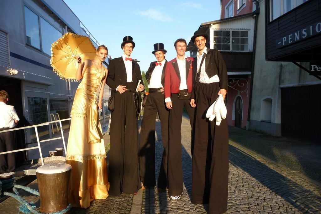 Three meters high, these stilt walking gentlemen in top hat and tails will greet and interact with your guests and provide a great atmosphere with plenty of charm and humour to flirt, dance, perform magic and juggle.