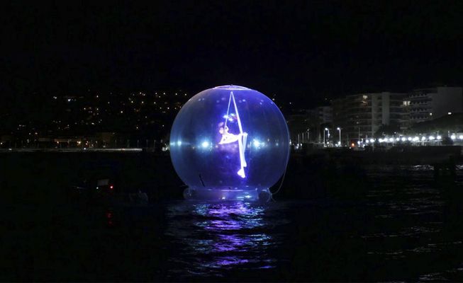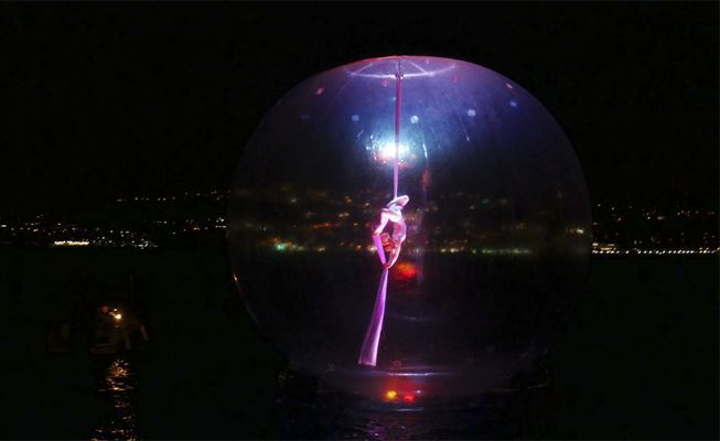 An aerial dancer inside a giant bubble creates an unforgettable, ethereal atmosphere, leaving a lasting impression with a visually stunning act