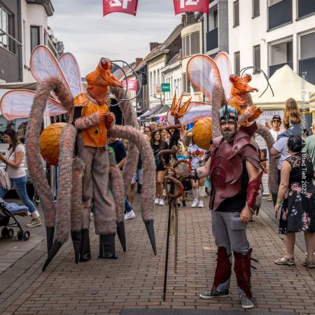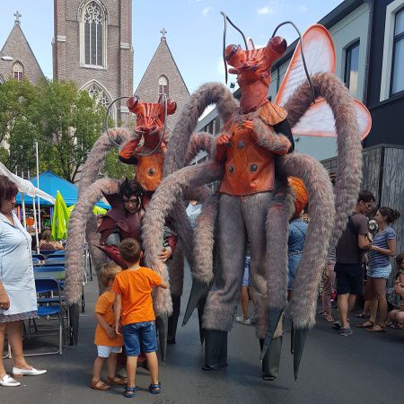 Our eye-catching stilt-walking insects, guided by their keeper, move through crowds, interacting with guests and creating a memorable experience