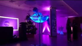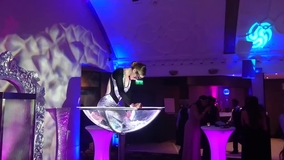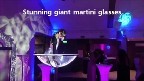 Our martini glass act showcases our stunning bespoke props, which can dissemble rather quickly as to be in and out of an event in striking speed. Standing at 1.6m our martini glass are battery powered and remote operated so they require no power points during the performance. Helping our technological martini glass become such a visually appealing free standing prop is the high tech lighting inside the glass itself, featuring awesome colour changing functions that help our act adapt itself to fit most themes and styles with just a colour and light change.