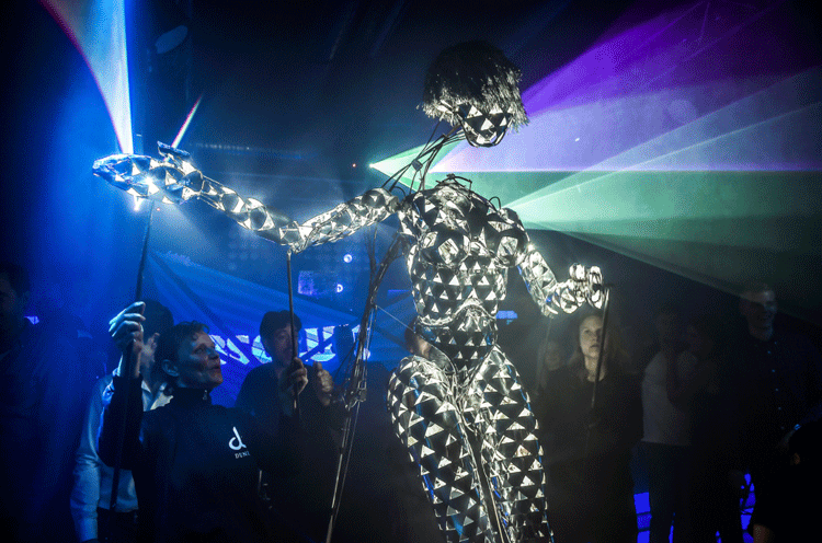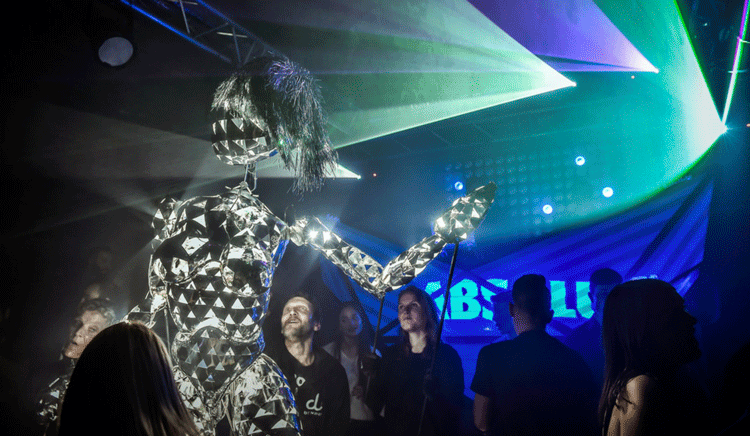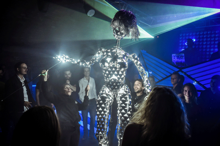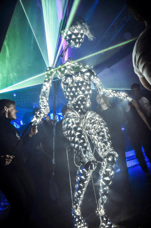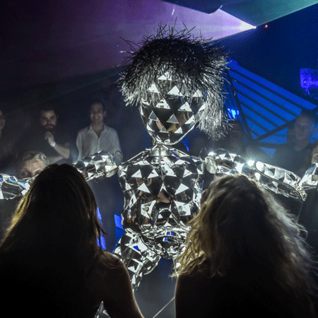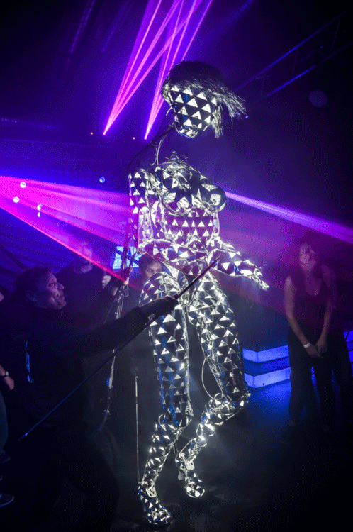 Brightening every event with her glistening mirrored body our Giant Mirror Puppet boasts event entertainment that is incredibly interactive, engaging and unique. Creating her own personal light show, this female puppet refracts light in every direction making her the ultimate walkabout act for any festival, nightclub or brand launch.