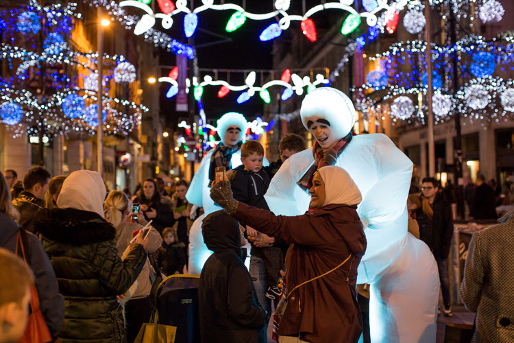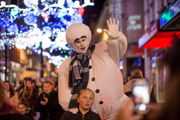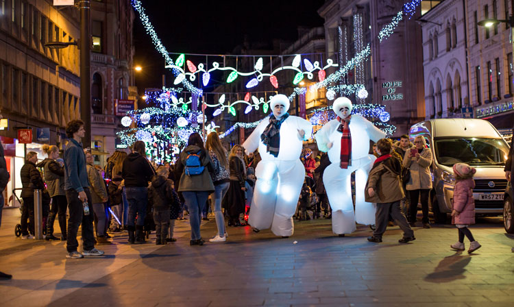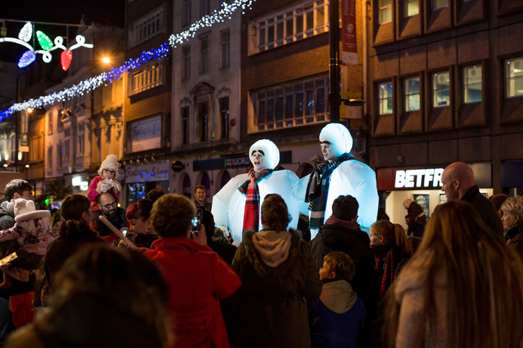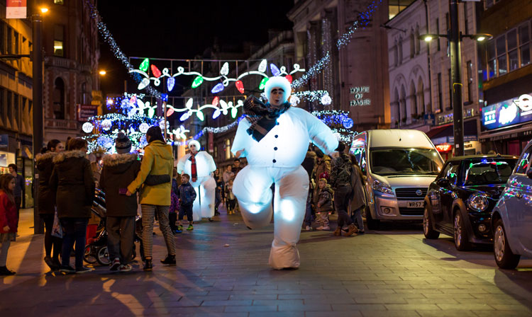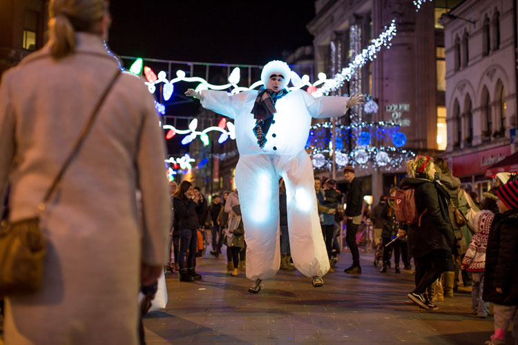 Standing at a towering eight-foot tall, the snowmen - clad in tartan scarves - rove your event, meeting and greeting your audience. On bouncy stilts, they will be seen bobbing up and down above the heads of guests. Given that they also light up, they are an eye-catching festive act that no one can miss.