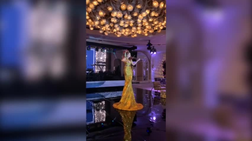 The stunning tailor-made long gown is available in a choice of gold, red, white or silver to match your theme or colour scheme