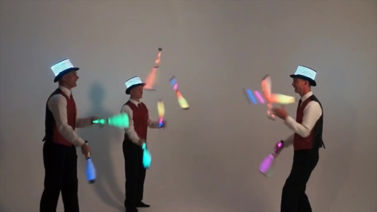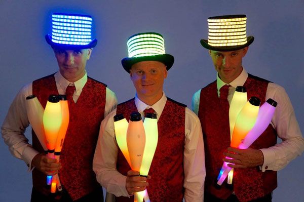Offering a highly visual performance, this team of expert jugglers have also paid great attention to creating eye-catching costumes complete with bespoke LED top hats and matching waistcoats. They perform using a range of high-tech LED juggling equipment including balls and clubs and can combine traditional and contact juggling into one exciting show.