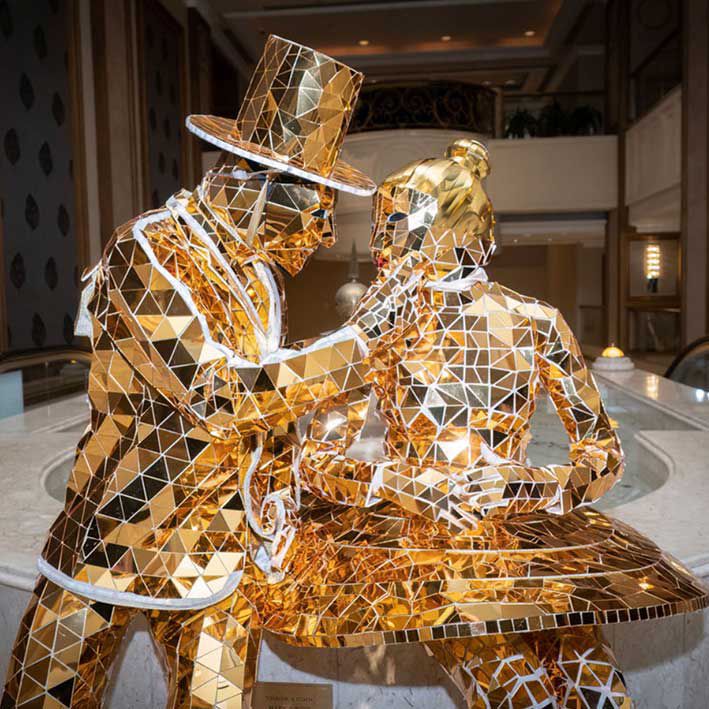 Covered completely in gold reflective mirrors, this couple exudes class and elegance and will bring a VIP feel to your event