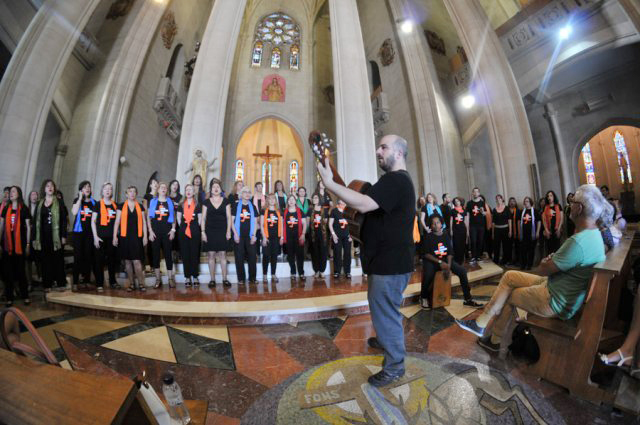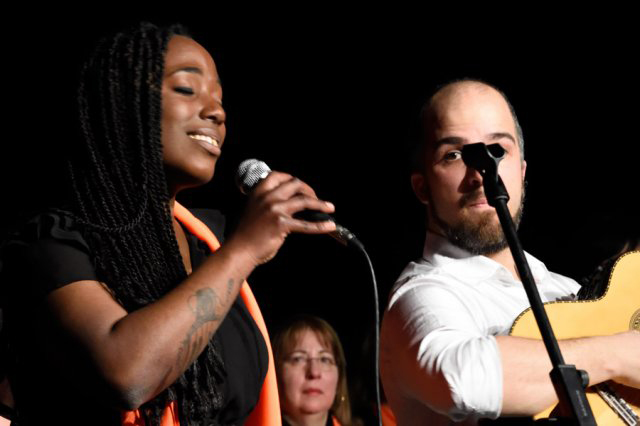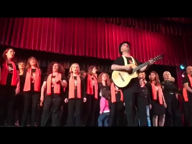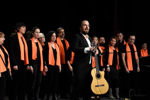 Gospel singers led by a talented and conductor/musician singer who always accompanies them with the Spanish guitar