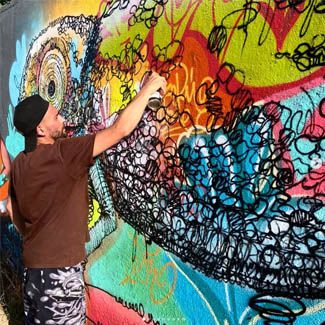 For indoor events he will use acrylic spray which is not hazardous inside a closed area. He is happy to discuss customization in the overall design