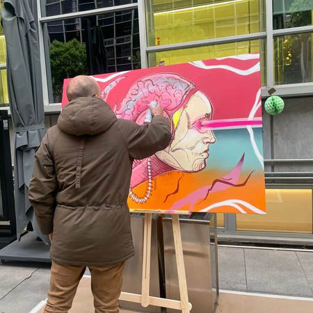 Our artist is open to create a piece on the theme of your choice and is not afraid to incorporate different elements of your product and branding