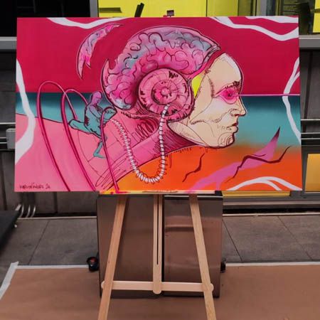 His mastery in colour choices has made him one of the most sought-after muralists in Madrid, as his expressive murals attract everyone's attention
