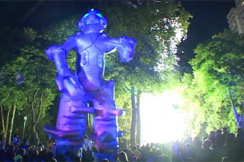 Grand Magix is a tour de force of aerial helium suspended performance, aerial puppetry, stilt ensemble drumming, specialist fireworks, giant inflatable puppetry special effects leading to the great musical and emotional cadence of the giant aerial light show moon moth.