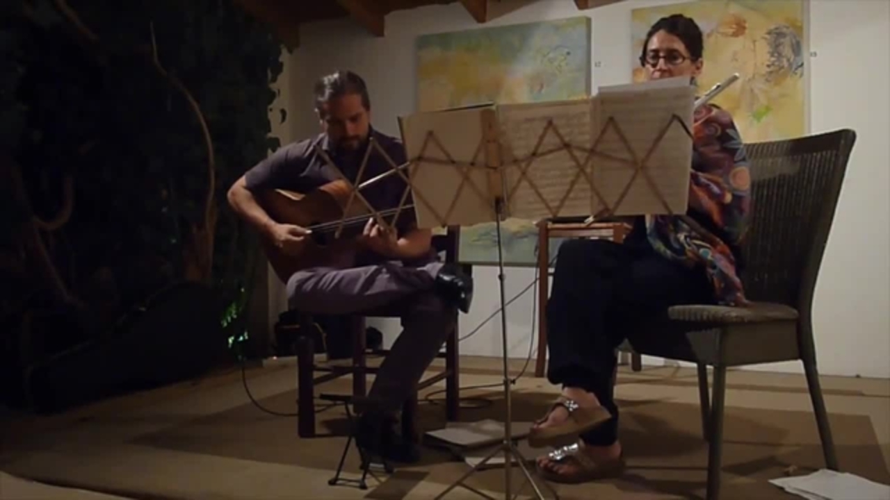 Plays memorable music on a beautifully romantic sounding acoustic guitar