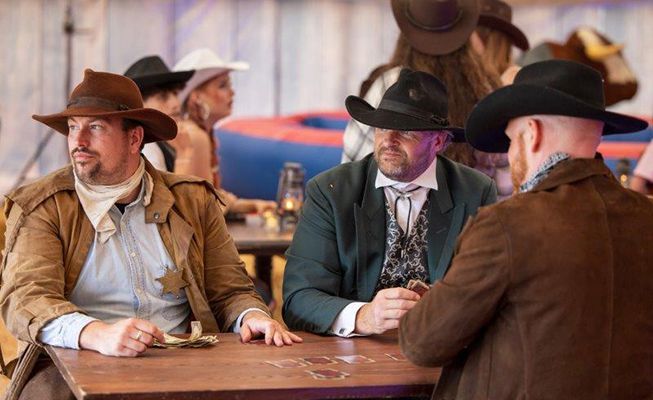 The show begins with the Sheriff who arrives at your venue in search of a notorious gang of cattle rustling outlaws. Placed within the audience enjoying a poker game, the villains are located by the Sherfiff and a fist fight ensues. Turning quickly into a gun fight when somebody pulls their pistol, the Sheriff will take the offender into custody after the stand-off. In an unexpected turn of events, the dastardly villain will try to pin the blame on one of the members of the audience instead of himself and the decision is left in the hands of audience.