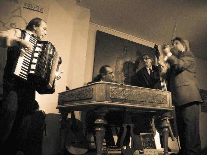 This Belgium based gypsy band play original compositions as well as traditional music from Eastern Europe (Hungary, Romania, the Balkans, Russia). Their repertoire includes evergreens, operetta melodies, light classical music, Viennese music, Jewish melodies (klezmer), as well as "hot club" gypsy music as played by Django Reinhardt and Stéphane Grappelli.