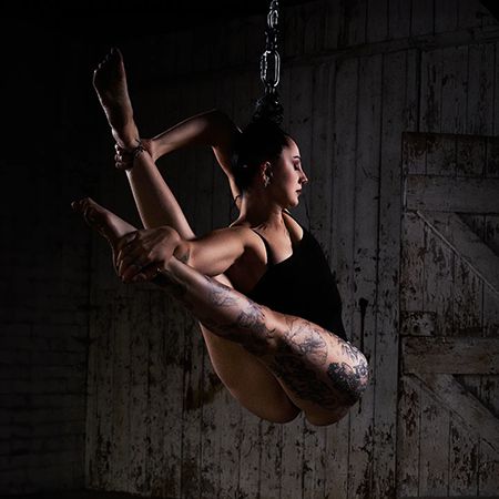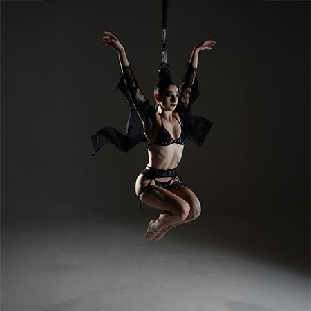 Performing breathtaking hair-hang aerial acts, she creates unforgettable entertainment for corporate events, private parties, and themed occasions