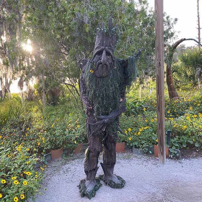 Our living tree performer remains eerily still, causing guests to question whether he's a statue. As they grow bolder and draw nearer, he suddenly springs to life, startling them.