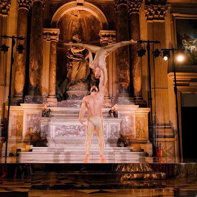Our Italian acrobats perform hand-to-hand balancing acts that showcases their impressive strength and flexibility