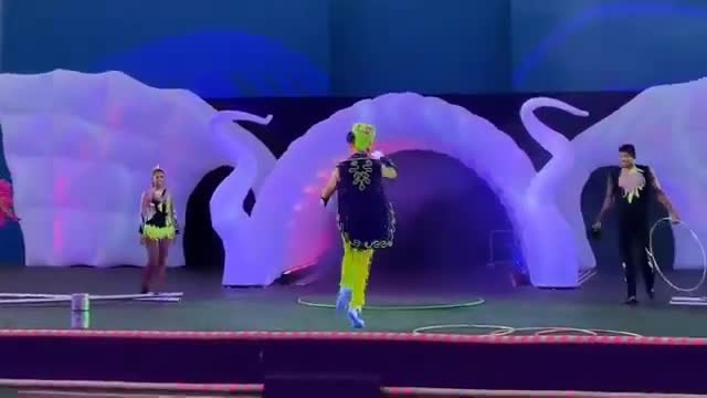 These dynamic acrobats deliver a heart-pounding performance featuring dramatic hand-to-hand balancing and mesmerising hula hoop elements