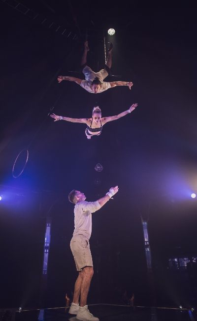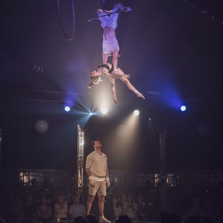 Unique circus-style act boasts an impressive combination of aerial, hand balance, trapeze and strength skills, creating a mesmerising performance